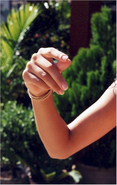 Hold your thumb and third finger together. Shake your hand really fast, so your index finger snaps against the third finger. That means "quick, fast."