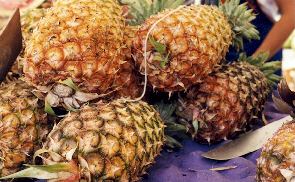 Brazil is the country in the world with the most fruits (check this out by reading the book Fruit in Brazil). Need I say more? The choices are unbelievable, so go ahead and splurge! For instance: seen here is an "easy-to-eat" variety of pineapple developed in Brazil...Even fruits that are not native to Brazil and have been introduced to the country recently, such as kiwi and lychee, grow in great abundance and have become huge favorites. In some areas, mangosteen and noni fruit (see photos below) are being slowly introduced. Noni fruit tea is made in the state of Pará in the Amazon.