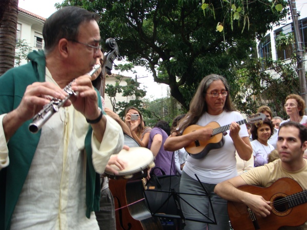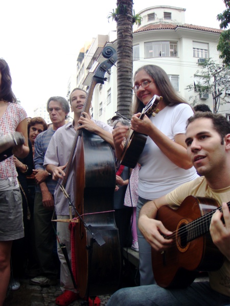 Feiras happen once a week, always on the same location. You don't need to get there really early, though. My friends usually go after 11 a.m., when prices start to go down and you still get a great selection. Many Brazilian men love to go to these markets, by the way. Men and women will shop with large straw bags or little carts. The most unusual feira I've been to takes place every Saturday in the Laranjeiras neighborhood of Rio de Janeiro: there you can enjoy great music by a group called "Chorinho na Feira" and their guests, as you can see on these photos.