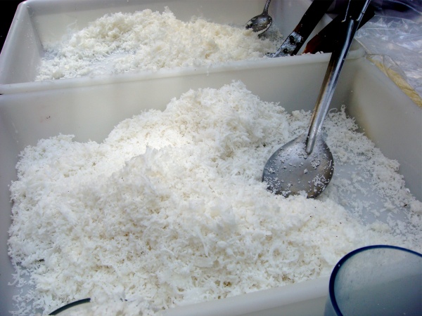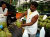 Coconuts are sold green, ready to drink, or grated on the spot. There are stands that sell coconut water and sugar cane juice also. Fantastic! This page continues on At the Feira or Street Market 2. There we talk a bit about vegetables and other stuff.