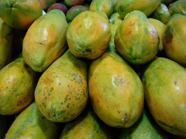 There are a couple of different papayas (pictured below): a very large one, the so-called mamão formosa, which is delicious, but not as much as the little ones, which are called mamão-papaya or just papaya. These are used in a fabulous Brazilian dessert called "creme de papaya." Yes, we have the recipe!