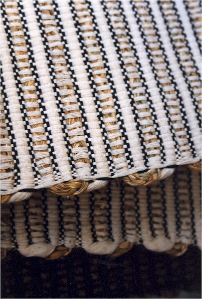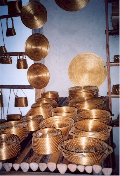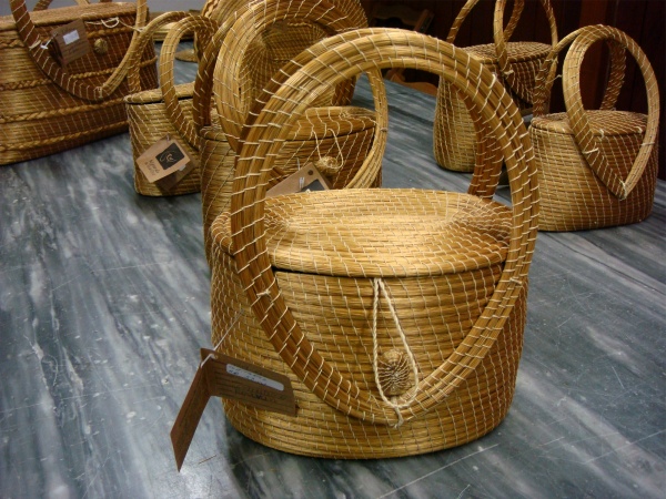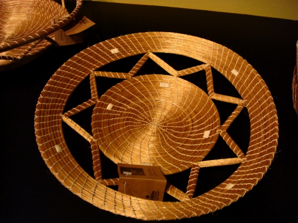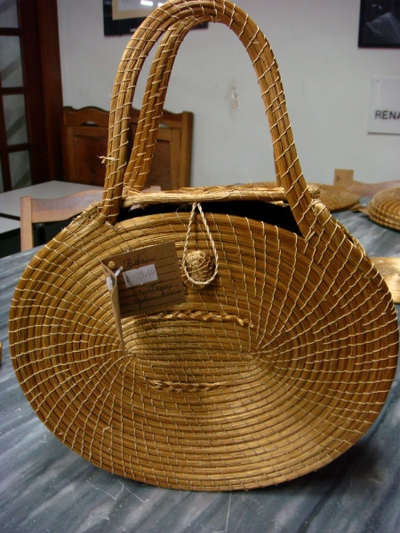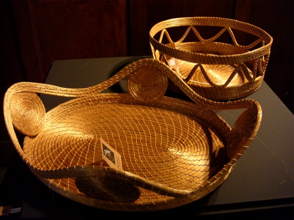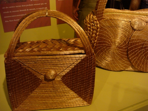 A legacy of Brazil's native inhabitants (who still make some of the most gorgeous baskets in the country, see left and last photo below), basketry is very much practiced all over; palm fronds and grasses are woven, crocheted, dyed, made into wonderful rugs, placemats, baskets, tablecloths, sandals, you name it! Here are some examples from the states of Ceará, Maranhão, Tocantins (the "golden grass" pieces above), and Piauí (the rug).