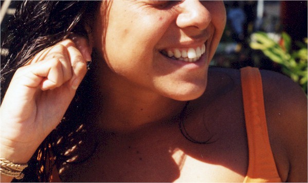 | Here's a cute one. Tug at your earlobe like this when you think something is delicious. Usually accompanied by the expression "é daqui!" Normally used only with food. Seems to be disappearing and becoming "old-fashioned." |