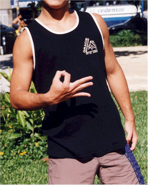 | This is very similar to the American OK, but it's VERY obscene! It means "screw you" like the gesture in the picture above. There are countless jokes in Brazil about unknowning Americans making the OK sign to signify approval or pleasure. Please, train yourself to use the "thumbs up" sign instead. I remember years ago in Rio, we were at the movies and they were showing a newsreel before the film. When Richard Nixon appeared making the OK sign, some clown in the audience yelled "that's what he's doing to the American people." Everyone in the theater broke out in laughter, of course, and we were laughing for quite a while! |