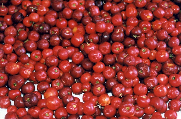 Also, if you're in luck, you may find fresh pitanga juice. This is the tiny fruit from a tree native to the Brazilian Atlantic Forest, called "pitangueira" in Portuguese. It turns a deep dark red when ripe and it's quite tart. Look at this orange-red color, that's what "pitanga" means in Tupi, the language that was spoken in Brazil before (and for years after) the Portuguese arrived.The pitangueira grows all over Brazil, from the North to the extreme South, and it's one of the things I miss the most. (It's in season in September, October, November, just like the jaboticaba.)