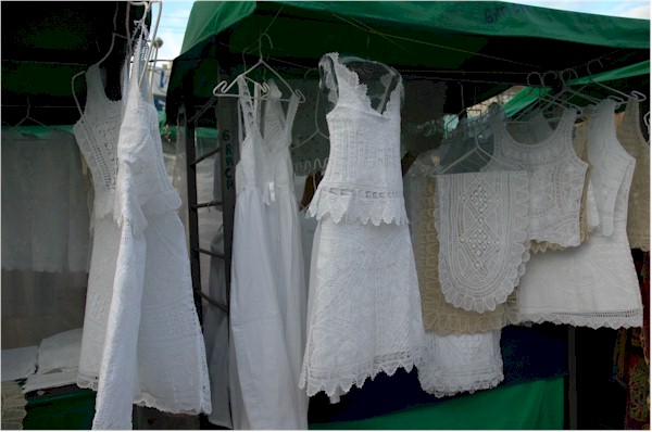 The most famous of all Brazilian laces is the "renaissance" or "Irish" lace made in Pernambuco. For information on shopping for dresses, skirts, blouses, and home accessories (tablecloths will cost around two thousand dollars), please see our Recife and João Pessoa pages. Among our favorites are also the "bilro" and "tramóia" laces on the island of Santa Catarina.