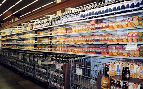Fruit juices at the supermarket are sold either in glass bottles or in boxes that do not require refrigeration until opened. You'll need to dilute juices like cashew or passion fruit and add sugar to them because they're extremely tart. The juices are either just the fruit or fruit juice with soy. These seem to be very popular.