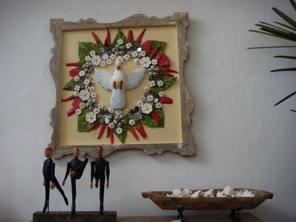 From painted bowls to the ubiquitous Holy Ghost dove to magnificent saints and altars to gorgeous, colorful flower bouquets to furniture and very large lions...you'll find that woodcarvings in Brazil are irresistible...and, unfortunately, very heavy. So, you'll need to arrange for shipping!