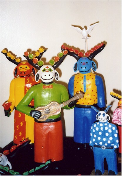 The festa do Divino in the small town of Pirenópolis in the state of Goiás attracts large crowds every year. The celebrations culminate in the famous "cavalhadas," a recreation of battles between Christians and Moors, with men in elaborate customs on horseback. We brought back a small figurine (see photo on the left) and a beautiful print.