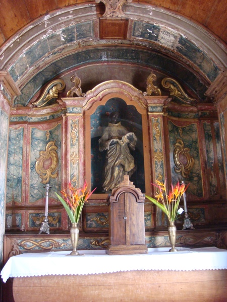 Next morning we took a stroll around the historic section of town to visit the Nossa Senhora do Carmo Church (1592), the Santo Antônio Convent and the São Francisco Church (1770), and the gorgeous Santa Roza Theater (1889). Unfortunately, there was some sort of temporary structure in front of it, so no photos there! Walking downhill, we passed the Casa da Pólvora (the white building) and this horse, who was happily munching away and not at all phased by the camera's beeping and clicking noises.