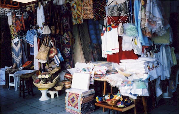 Maceió is the capital of the state of Alagoas in northeastern Brazil. It boasts some of the most gorgeous laces in Brazil and fantastic food (the tapiocas made with polvilho azedo and grated coconut or carne de sol and queijo de coalho, also known as "the crępes of the Northeast," are superb)...and some of the most original public telephones in Brazil! Brazilian creativity at its best! The beaches in town are polluted, unfortunately, but you can drive south to some of Brazil's best beaches, like the Praia do Gunga seen below. For anyone with a tapioca craving and a good knowledge of Portuguese there's the Maceió online guide on Férias Brasil...