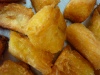 Just before serving fry the yuca in a deep fat fryer or in a skillet. When I use a skillet, I pour about 2 inches of oil. Fry the yuca in several batches until golden, about 2-3 minutes. Blot on paper towels and serve hot. My friend Steven Raichlen, a cookbook author and newspaper columnist from Miami, likes to sprinkle the fried yuca with onion or garlic salt.