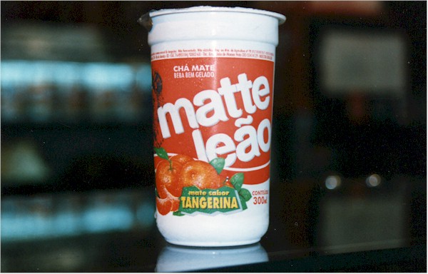 If you've ever been to the beach in Rio, you've seen and heard the beverage sellers who walk up and down amid sunbathers and volleyball players...here's a picture of what they sell, in this case, a tangerine-flavored iced mate tea.