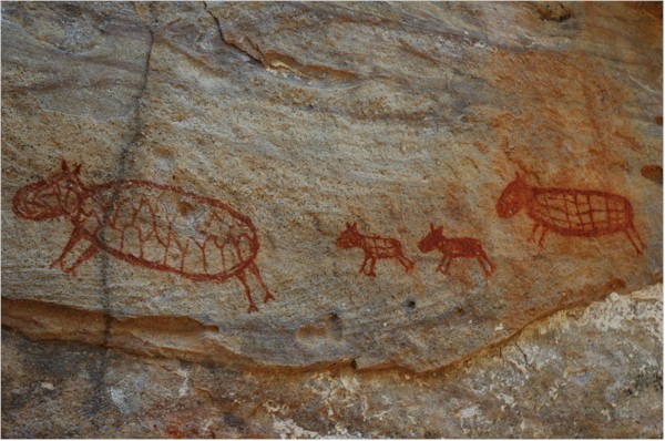 Arara - There are capivaras (capybara, in Portuguese) in the name and in the paintings, but where are they? Did they live here when the climate was humid? How long ago did the climate change? Was that a natural event?