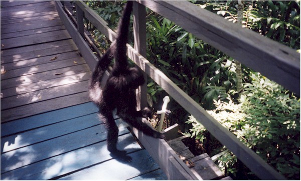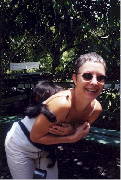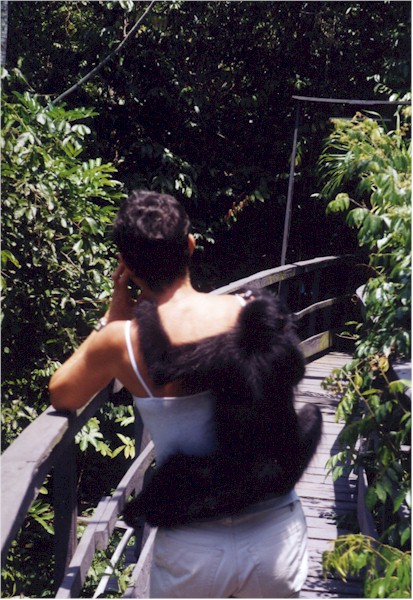 There are lots and lots of monkeys at and around the Ariaś Amazon Towers. You shouldn't really play with them or feed them, they can become quite aggressive. This little fellow, though, apparently is a very friendly sort. His mother was killed and he may be looking for her in females of our species...Anyway, he was very cuddly and affectionate.