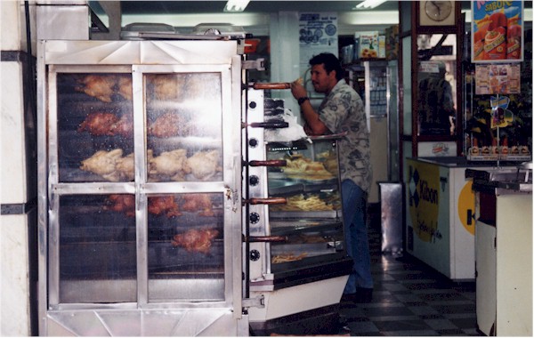 Bakeries also sell sodas, cheeses and cold cuts, and a variety of other foods. Many padarias will also roast chickens (see photo; they're done by the front door and are called "TV for dogs"), so if you're a busy person you can pick up your dinner with your fresh bread!