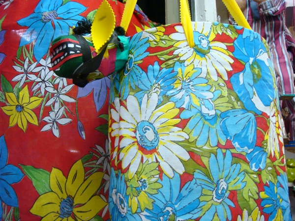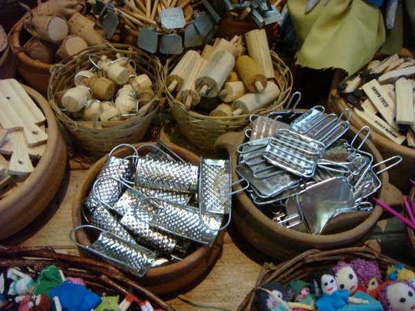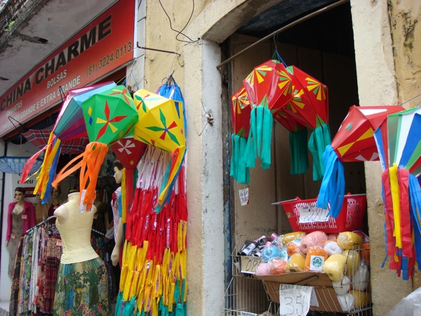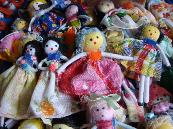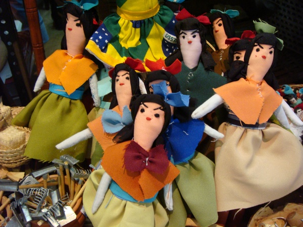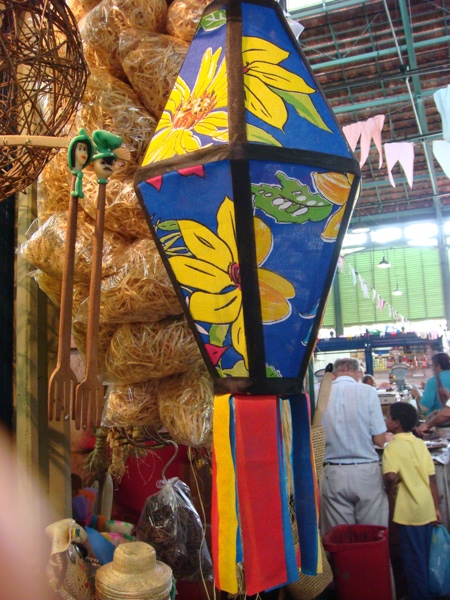 Mercado São José, across the river from Recife Antigo, is a fabulous place to buy jewelry made of coconut, palm fronds, and different seeds, adorable rag dolls, carnaúba palm bags, traditional noise makers like the famous rói-rói, etc. The dolls come in several sizes, our favorites are the tiny ones, about two inches tall. Around June and July, during the traditional festas juninas you will find all sorts of balões like the one pictured here and bumba-meu-boi costumes for children. All of these are pictured below.