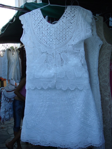 The market around the church is a great place to buy laces (like the marvelou dress on the photograph below) and cachaças with pornographic labels!! Fátima Rendas is a chain of stores that also sells beautiful renaissance laces. In Boa Viagem, they're located across the street from the church. Other locations include Casa da Cultura, Shopping Center Recife, and the airport.