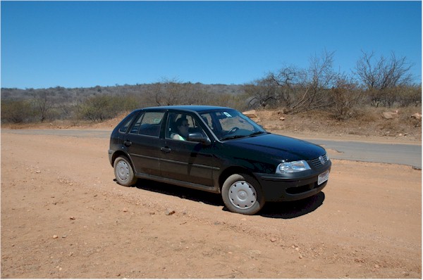 I organized the images on several pages, according to the trails I did. There are many more paintings than these and even older sites that are yet to be open to the public. I hope to go back someday. I also added a photograph of the road (shame on the government, really!) and another of our sturdy, made-in-Brazil, Volkswagen Gol. I don't know how either car or passenger made it in one piece; credit must go to our experienced and competent driver, I suppose. I hope these photographs will entice other people to make the journey. Serra da Capivara is not easy to get to, but it's one of the most amazing places on Earth.
