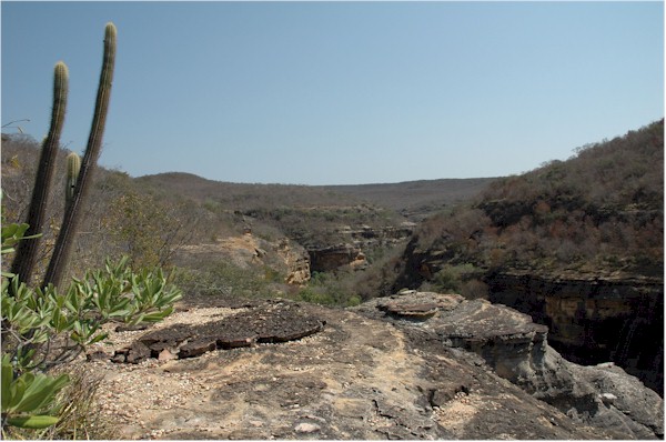 Many years ago I read an article in a Brazilian magazine about the discovery of cave paintings in the remote, arid backlands of northeastern Brazil. (At some point, assuming archaeologists in North and South America come to an agreement about it, these paintings and other findings in the park should push back the date of human settlements in our continent.) Then, in December of 2004, I saw an exhibition in Rio about Brazil's prehistory that featured the magnificent Serra da Capivara National Park, where most of these sites are located. I decided at that time that I had to go see the real thing. A long flight and hundreds of miles of horrendous road later, there I was...never walked and climbed so much in my life. The area is extremely hot and very dry and dusty and, at the end of the day, I was exhausted and wondering about my sanity (with a tall glass of very cold coconut water in my hand)...but the park is worth every step and sore muscle.
