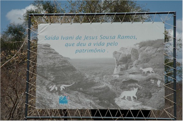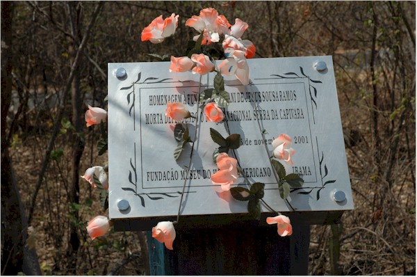 These pages are dedicated to the strong and brave women - like the young lady pictured here - that guard the entrances to the park and to the people of the Museum of the American Man Foundation in São Raimundo Nonato, in the state of Piauí, who are succeeding against all odds. By the way, there are photos below of a plaque dedicated to one of the guards, who was killed in 2001 by a hunter (who also happened to be her brother) that she had denounced to the authorities. Threats have also been made against archaeologist Niède Guidon, the 72-year-old professor from São Paulo who directs the foundation, which runs the park (please read our interview with her, she's an incredible, awesome - in more senses than one - woman).